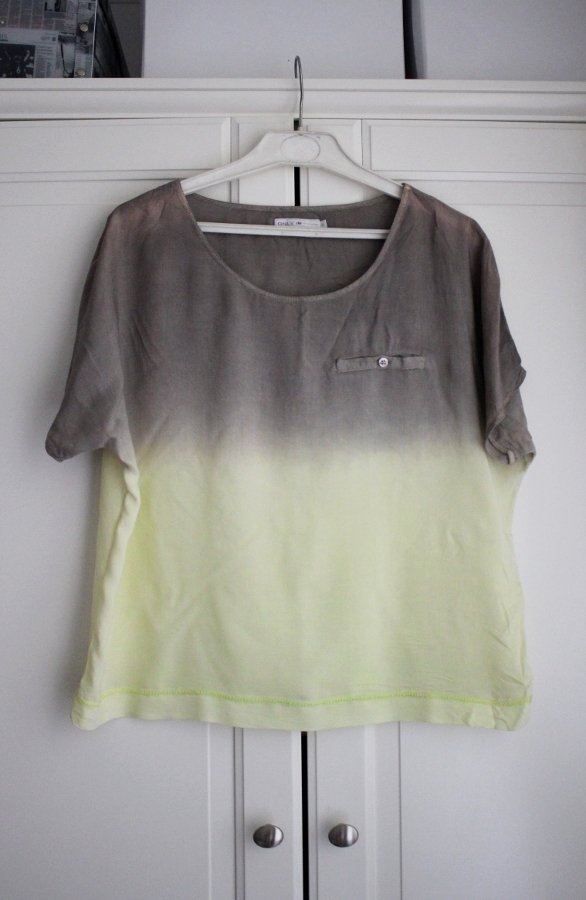 Krótka koszulka ombre marki ONLY. Metka wewnątrz wycięta, materiał nierozciągliwy. Na lewej piersi posiada kieszonkę. Rozmiar z metki 36, ale będzie pasowała także na osoby noszące większe rozmiary.