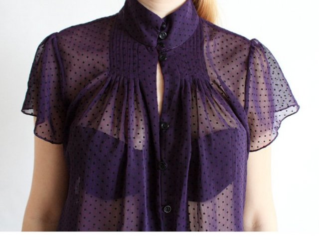 Niezwykła, fioletowa, eteryczna bluzka zapinana na drobne guziczki.
