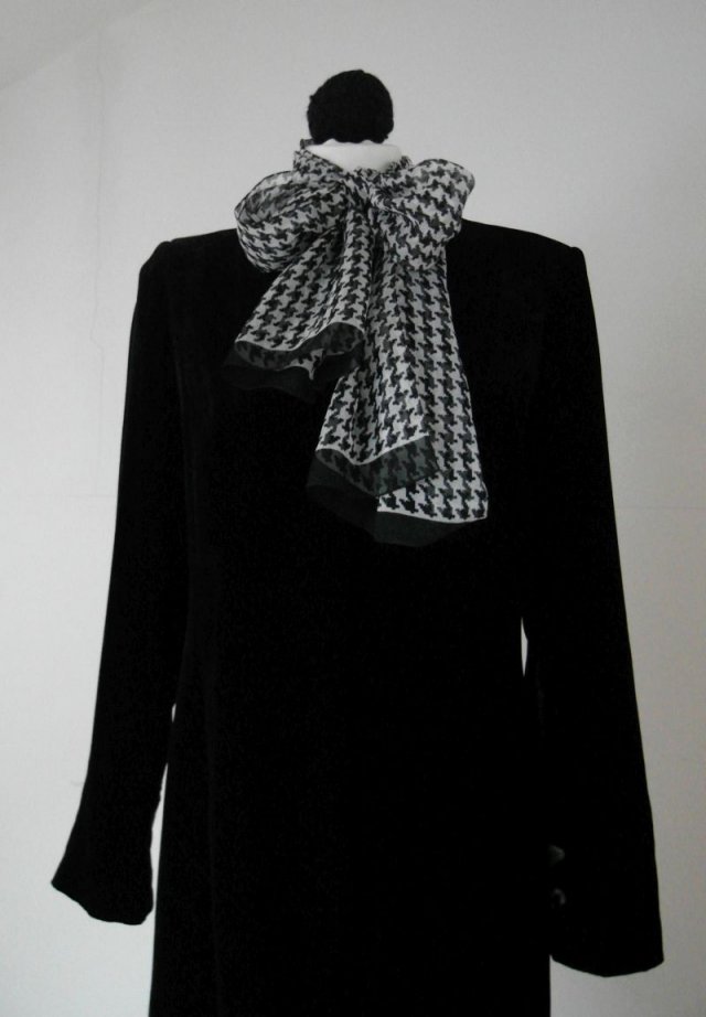 Cienki szaliczek w biało czarną pepitkę włoskiej firmy Tierack.