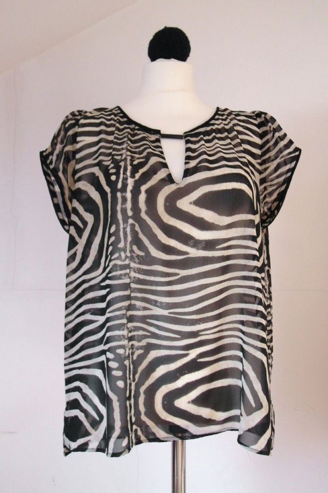 Cienka,zwiewna bluzka w ciekawy czarno - jasno beżowy wzór, rozm.L