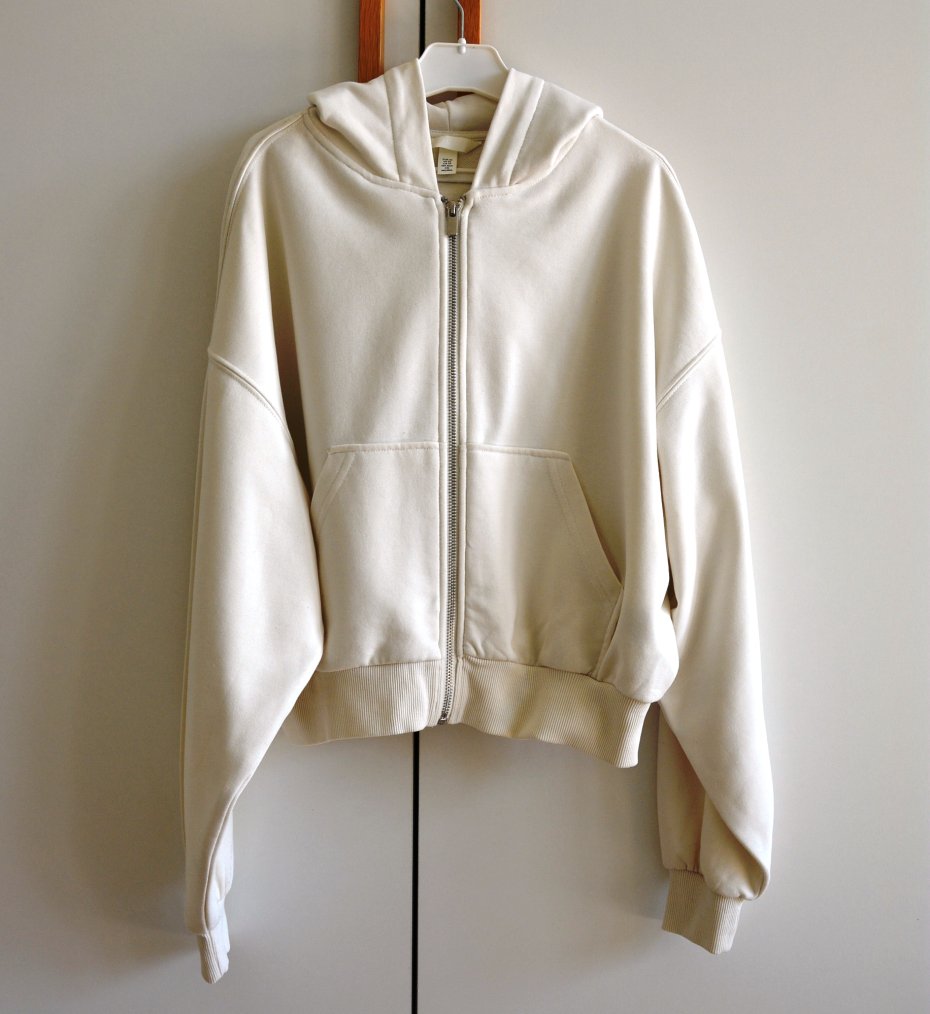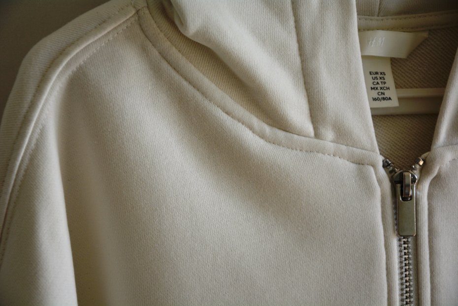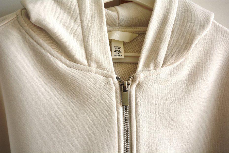 Ciepła bluza z grubego materiału z kaputerm w kolorze ecru na zamek marki H&M, roz. XS. Stan bardzo dobry.
