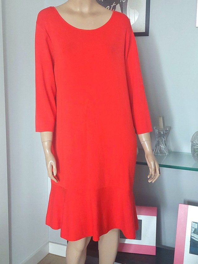 ciepła sukienka marki Bonita, w czerwonym kolorze. materiał mięsista dzianina 79% wiskoza 21% poliamid. Rozmiar z metki XL, na manekinie małe 38.