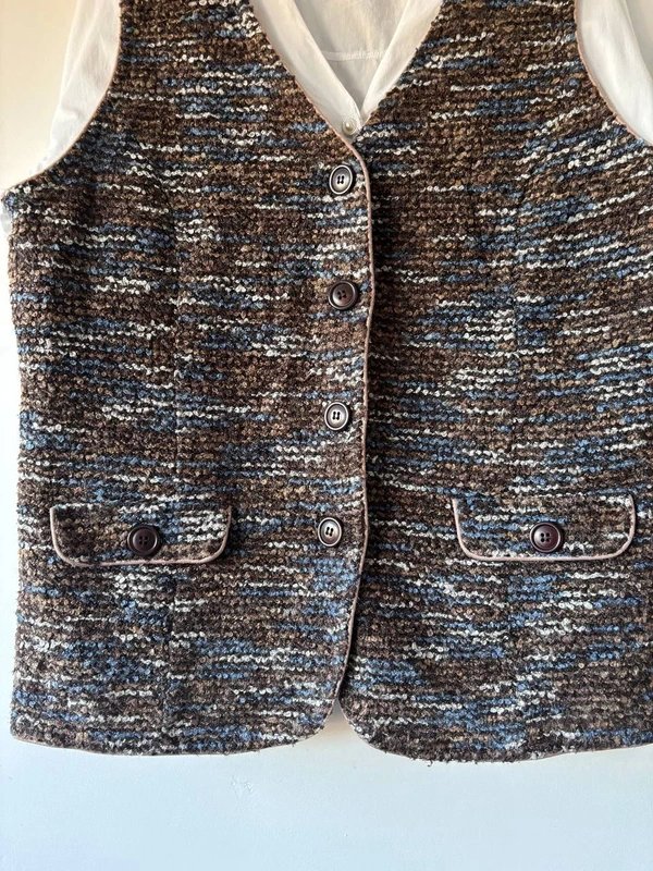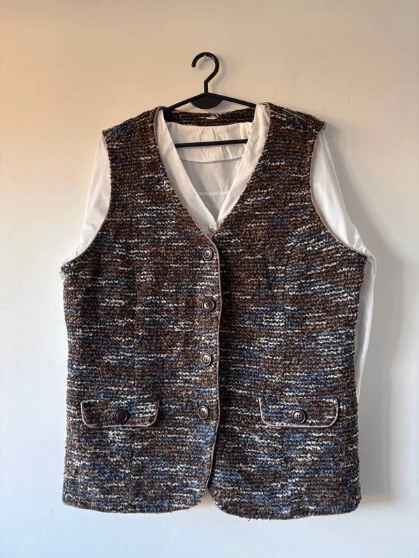 Grubszy, mięsisty materiał o nieregularnym splocie, typowy dla klasycznego stylu retro countryside i old money.