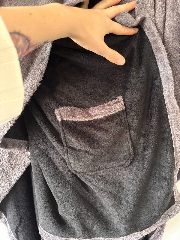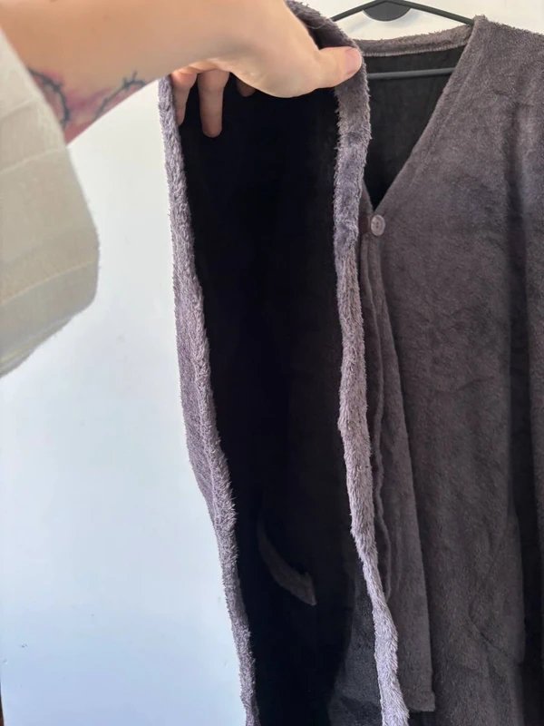 Miękki, puszysty materiał, zapinane na guzik z przodu.