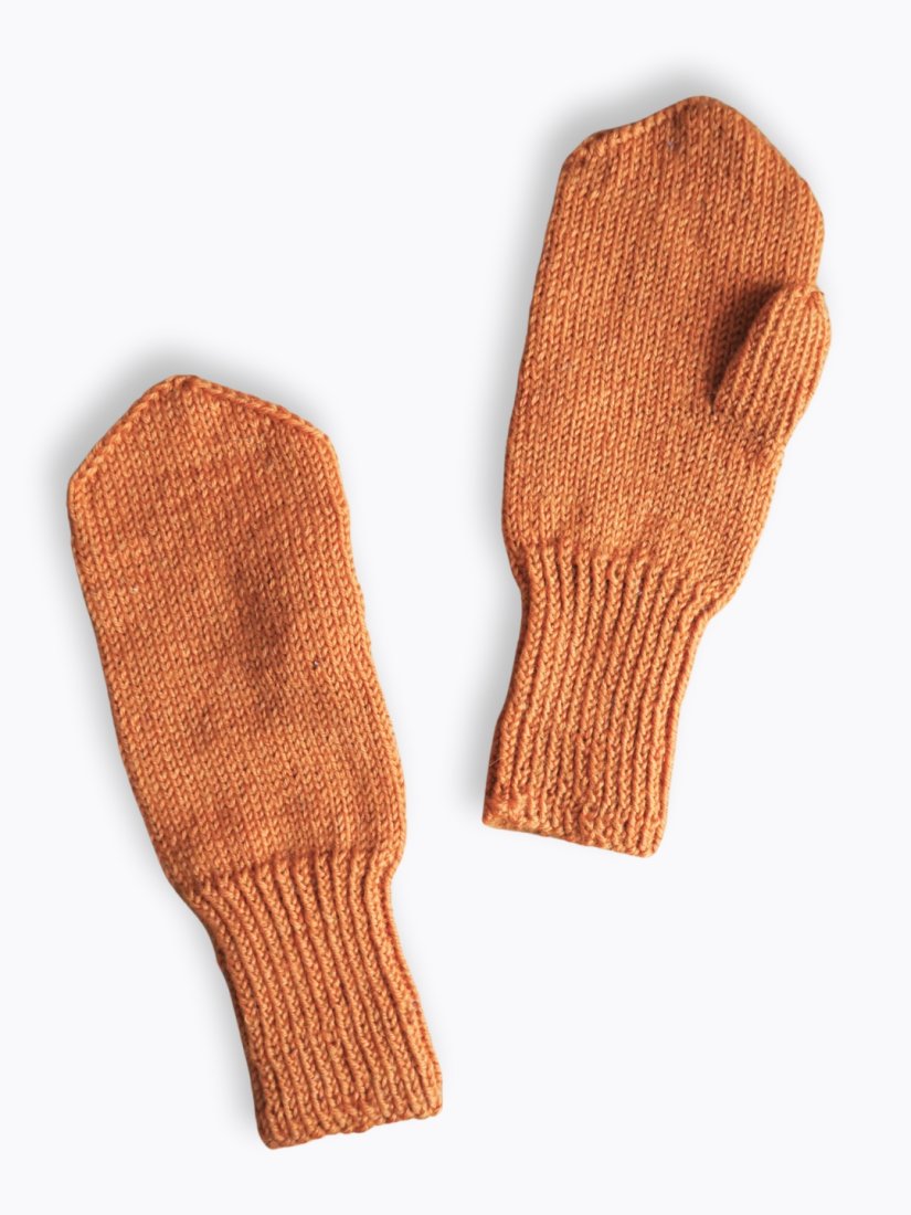 Ciepłe wełniane rękawiczki z jednym palcem w stonowanym pomarańczowym kolorze.