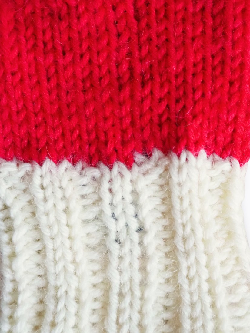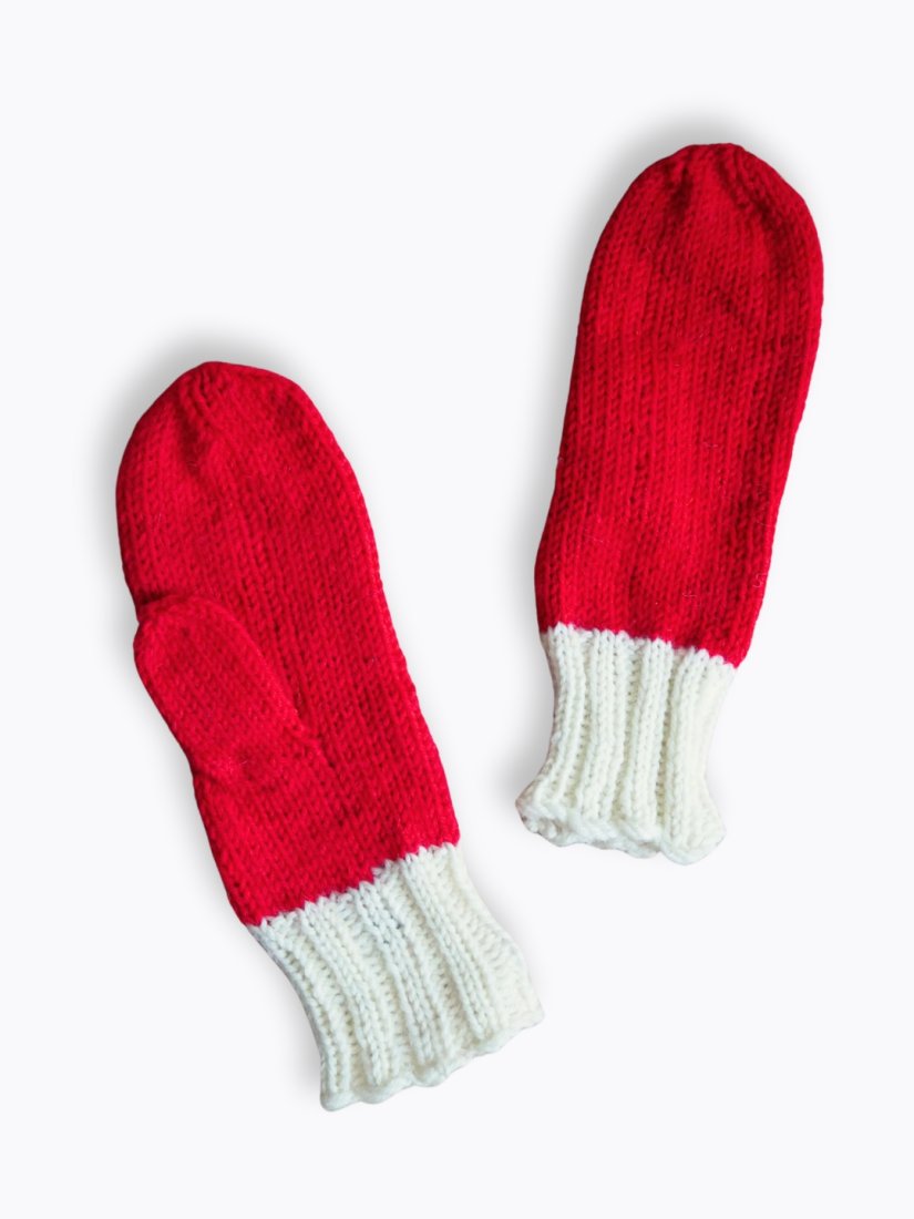 Rękawiczki wykonane ręcznie na drutach wykonane z wełnianej przędzy.