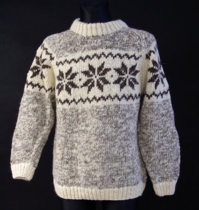Ciepły.męski sweter,zrobiony ręcznie na drutach.Włóczka wełna.Góra ozdobiona wrabianym wzorem.Rękaw reglan.Brzegi wykończone ,białym ściągaczem.Stan bardzo dobry.Długość 75 cm.pod pachami 124 cm.rękaw 85 cm.mierzony od ściągacza.