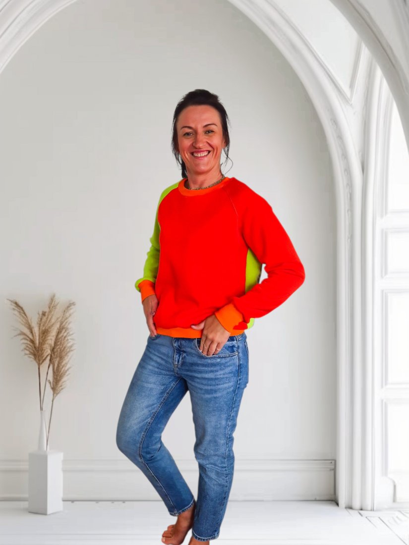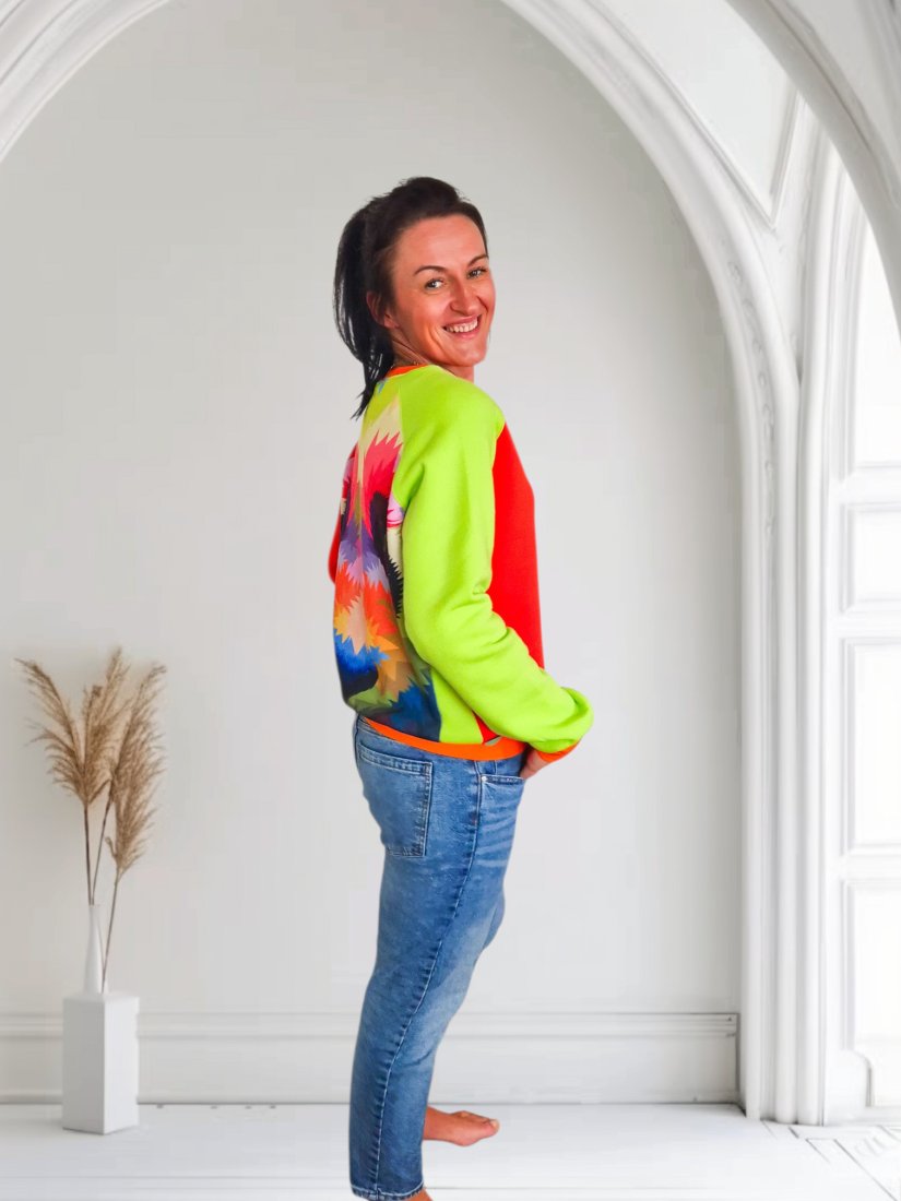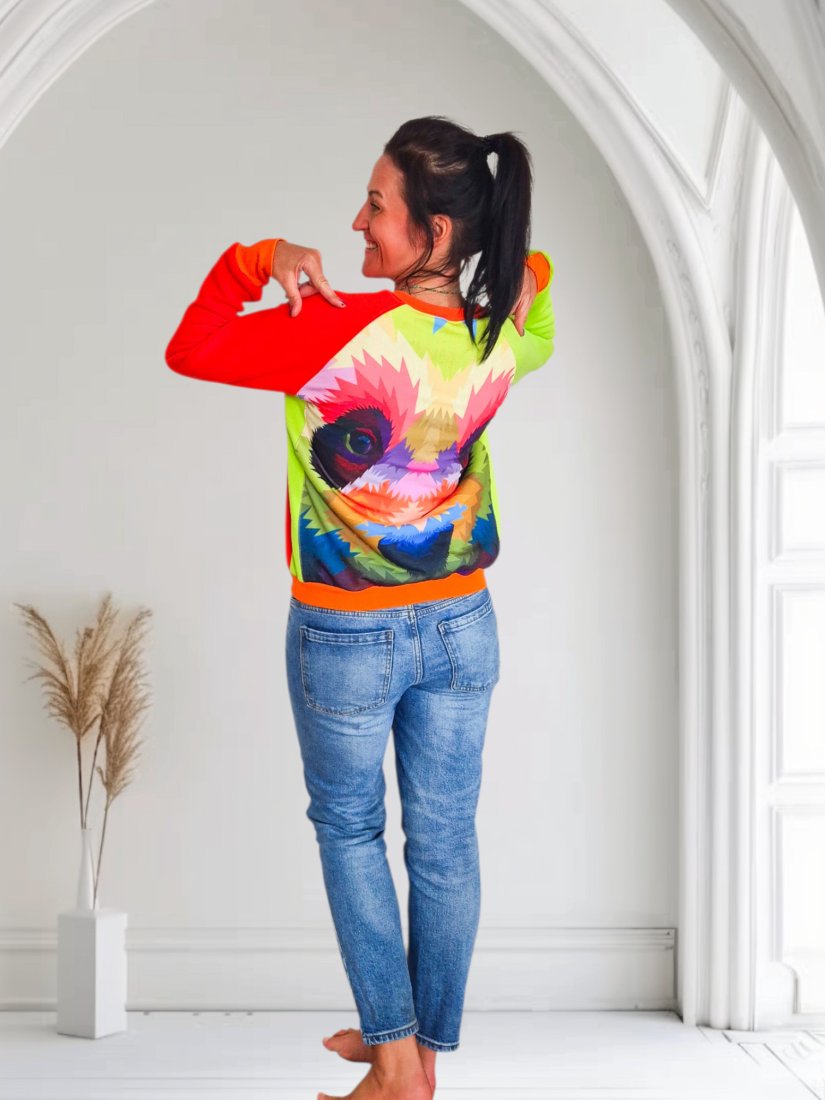 Ręcznie uszyta bluza w geometryczne wzory