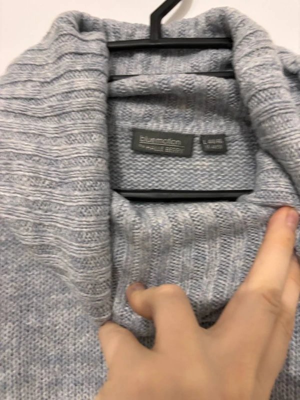 Ciepły, miękki sweter bluemotion w odcieniu jasnego niebieskiego. Model oversize z dużym, otulającym golfem, idealny na chłodne dni. Wykonany z lekkiej i przyjemnej w dotyku przędzy , która świetnie trzyma ciepło i nie drapie. Luźny krój zapewnia komfort i łatwo dopasowuje się do sylwetki.
