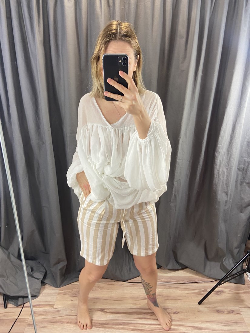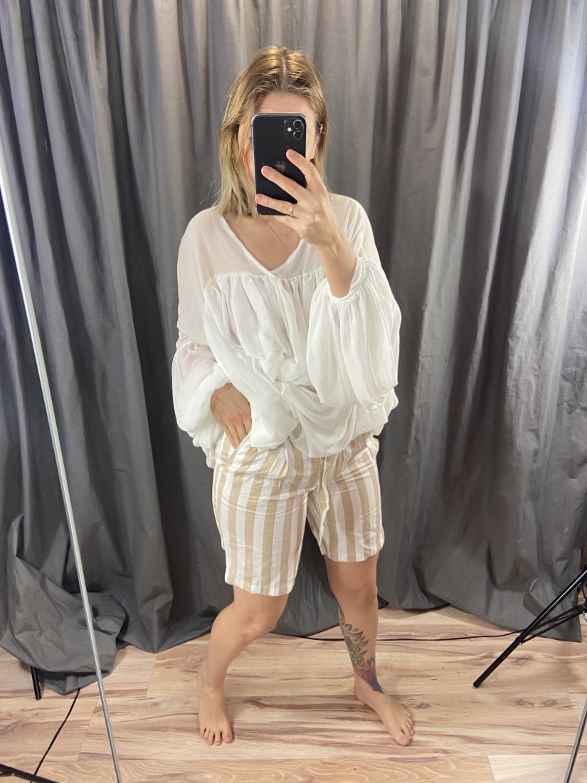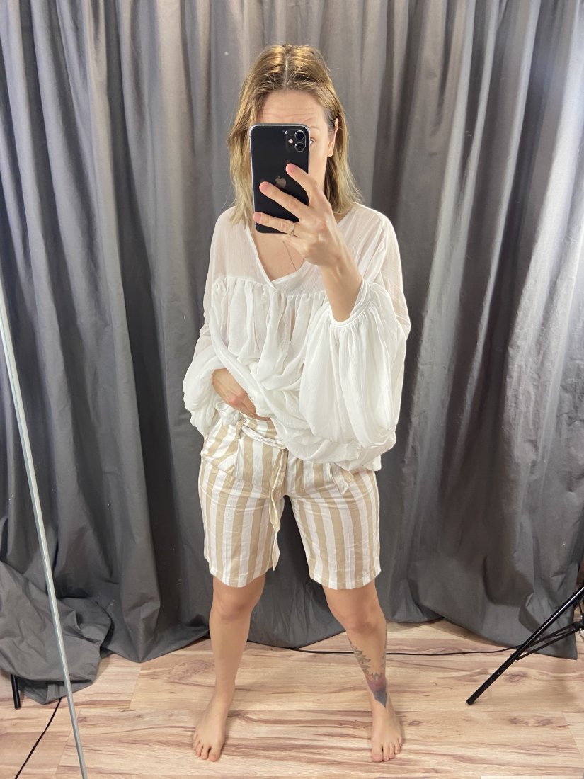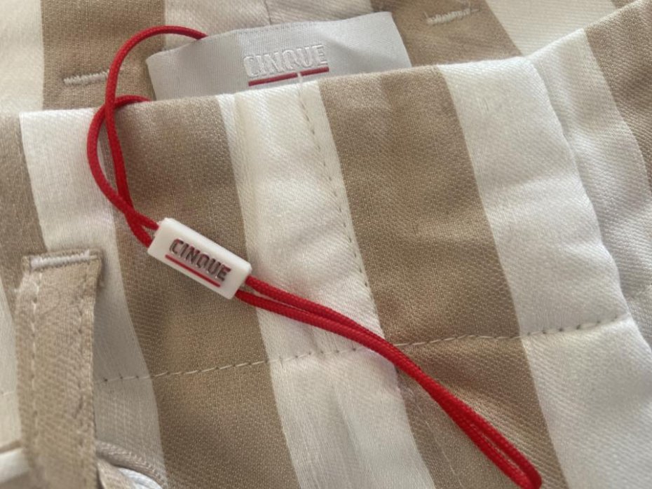 Eleganckie spodenki ekskluzywnej marki cinque. 53% wiskoza, 47% len, podszewka bawełniana. Zapinane na zamek+ guzik+w pasie paseczek wiązany. Jakościowo to mega dobry produkt!