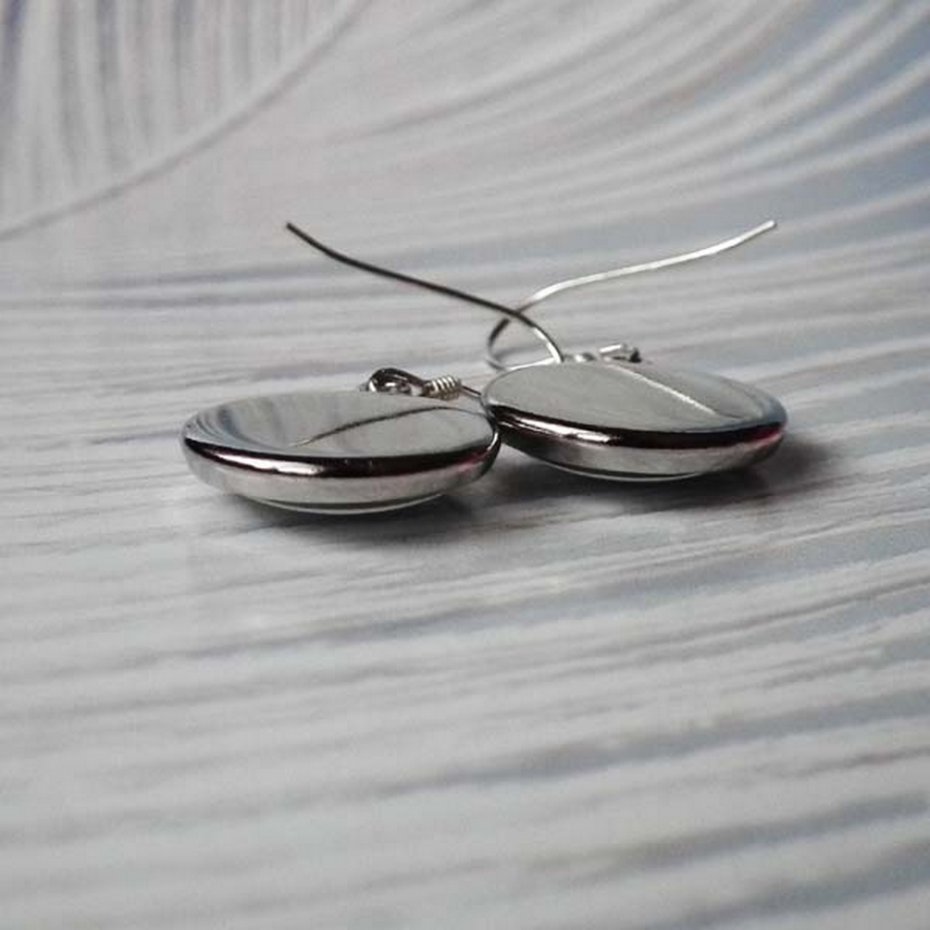 Delikatne, śliczne kolczyki wiszące z oryginalną grafiką,zatopioną pod wypukłym szkiełkiem i oprawioną w hipoalergiczną bazę w kolorze srebra, bez niklu i ołowiu.. Grafika jest najwyższej jakości, wyraźna i nasycona. Bigle otwarte ze srebra próby 0,925. Oryginalne kaboszony wykonane ręcznie według mojego projektu i przeze mnie, z dbałością o każdy detal.