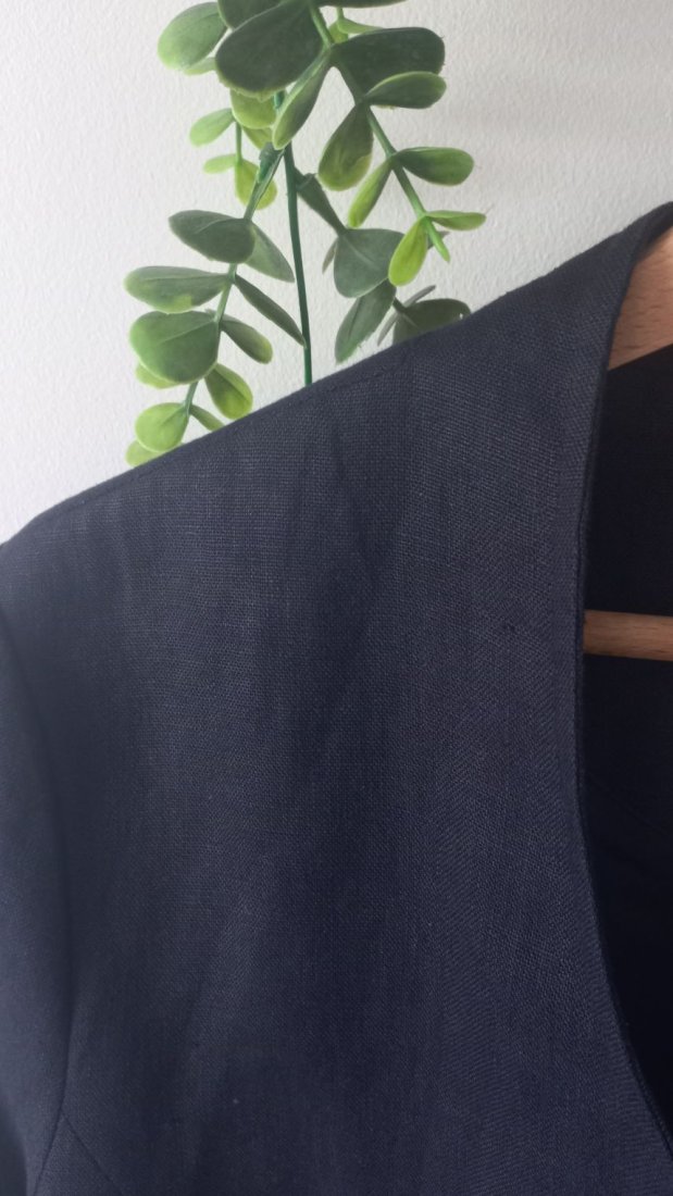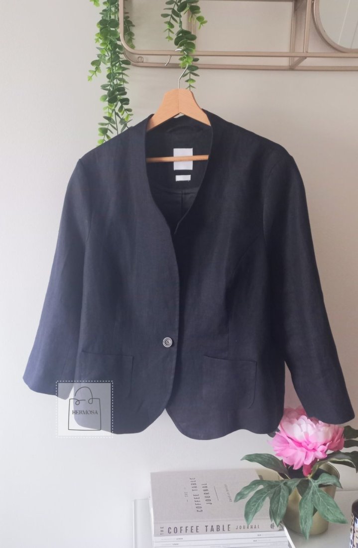Granatowy lniany żakiet marynarka skandynawskiej marki premium Claire Woman.