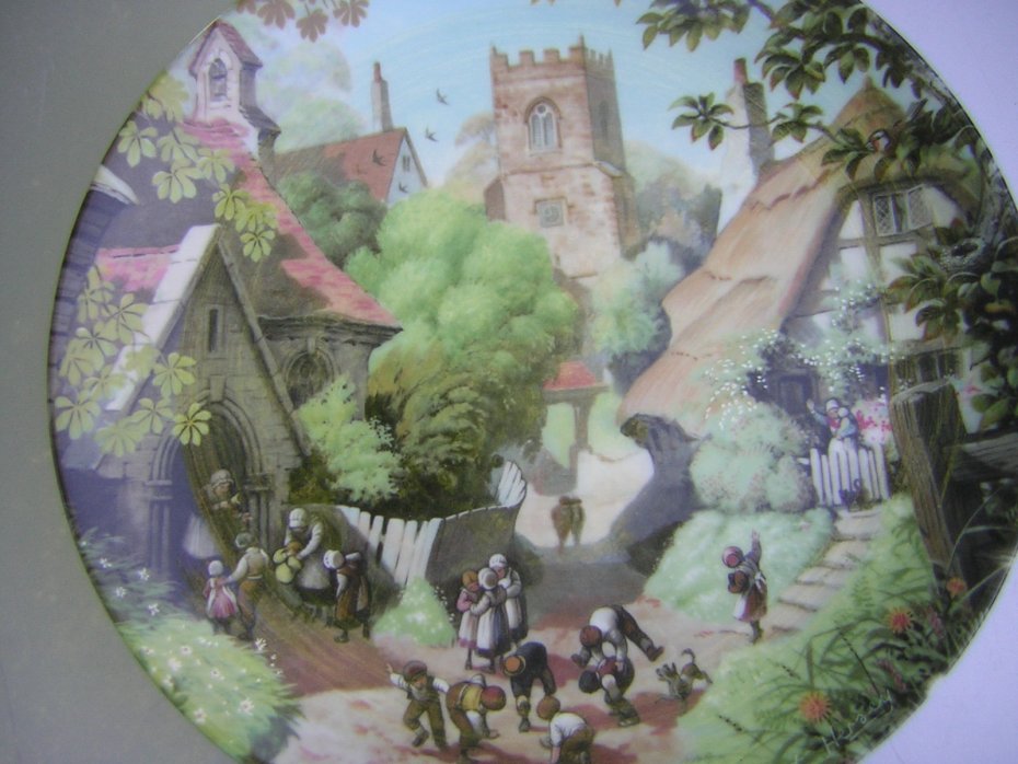 Kolekcjonerski Talerz Porcelanowy. Sygnowany jakością COALPORT Bone China Made in England. The Tale of a Country Village : Village School by Robert Hersey.Porcelana mocna, dźwięczna, solidna.