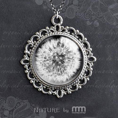 Naszyjnik Coco to bardzo romantyczne, nostalgiczne i kobiece malutkie dzieło sztuki. Obrazek pod szkiełkiem to kwiecista fotografia.