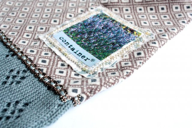 Miękki, długi, podwójnie zszywany szal marki Container. Materiał to prawdopodobnie wiskoza z domieszką akrylu.