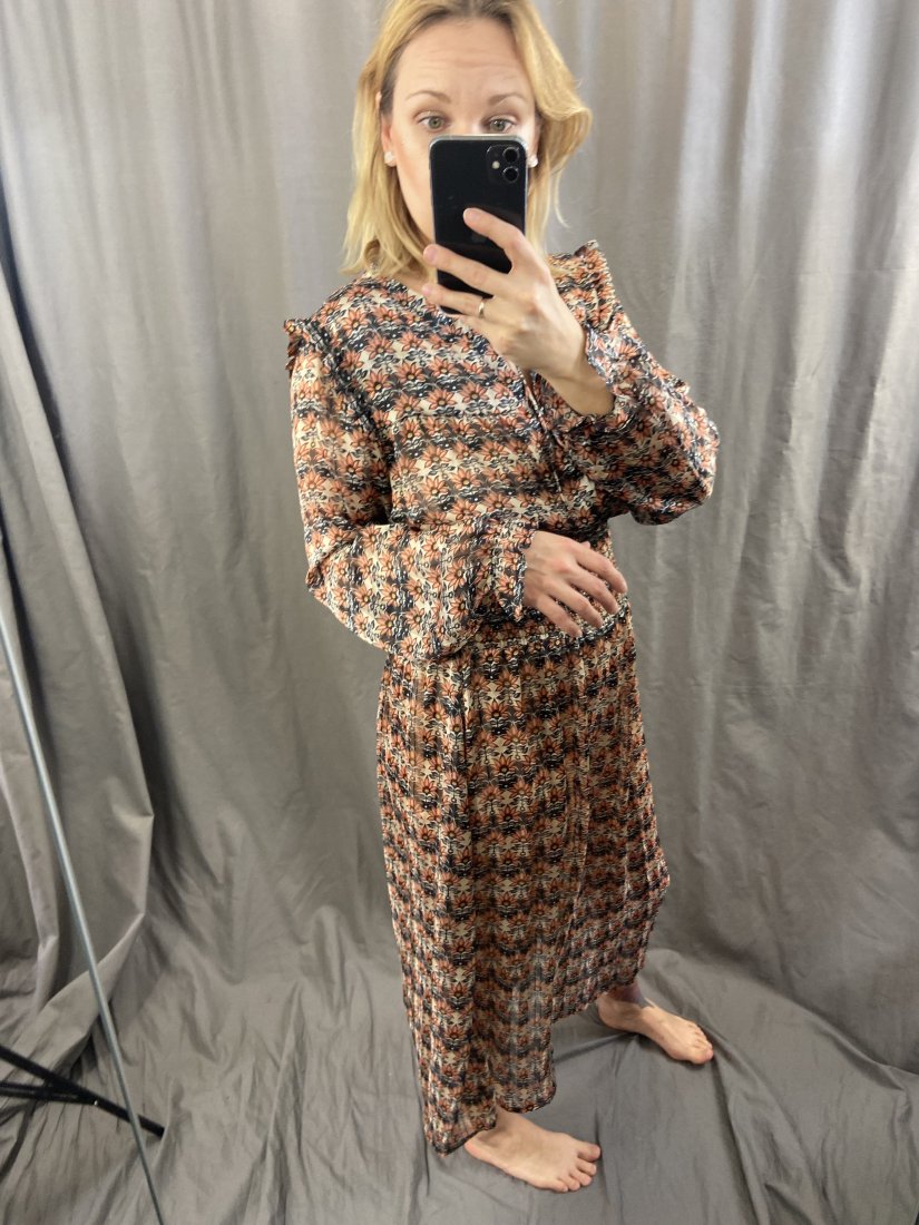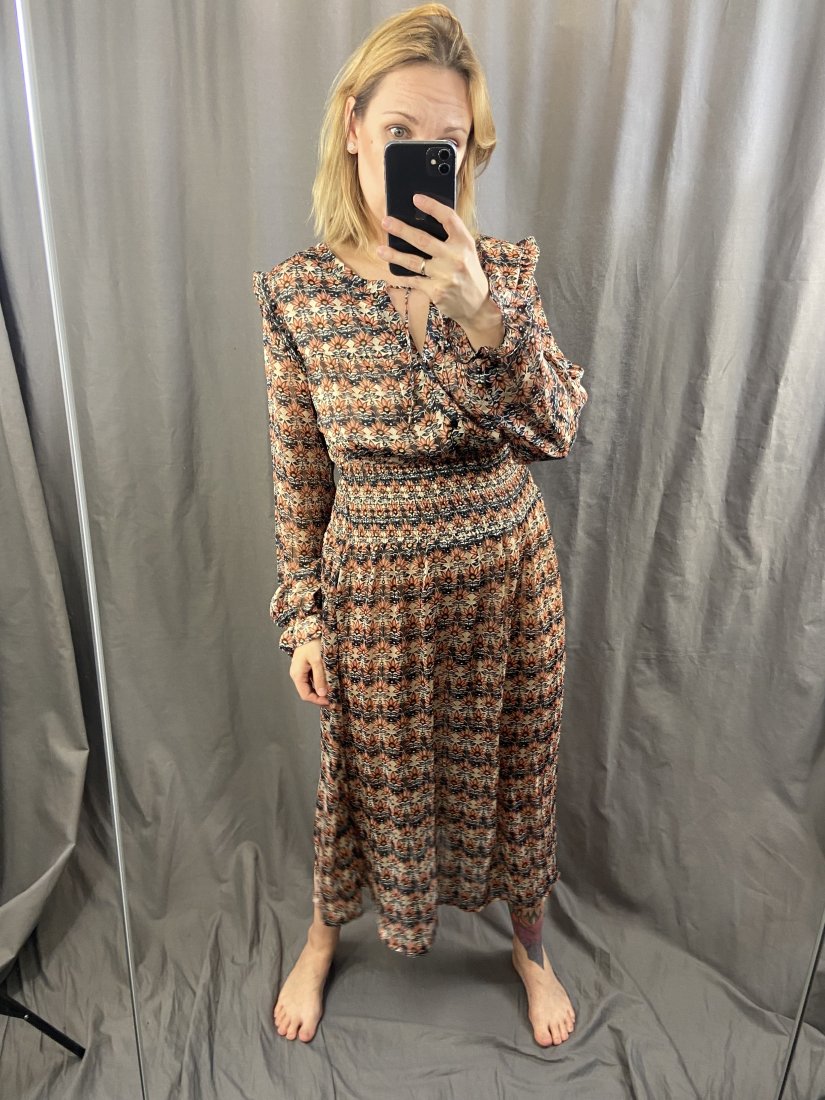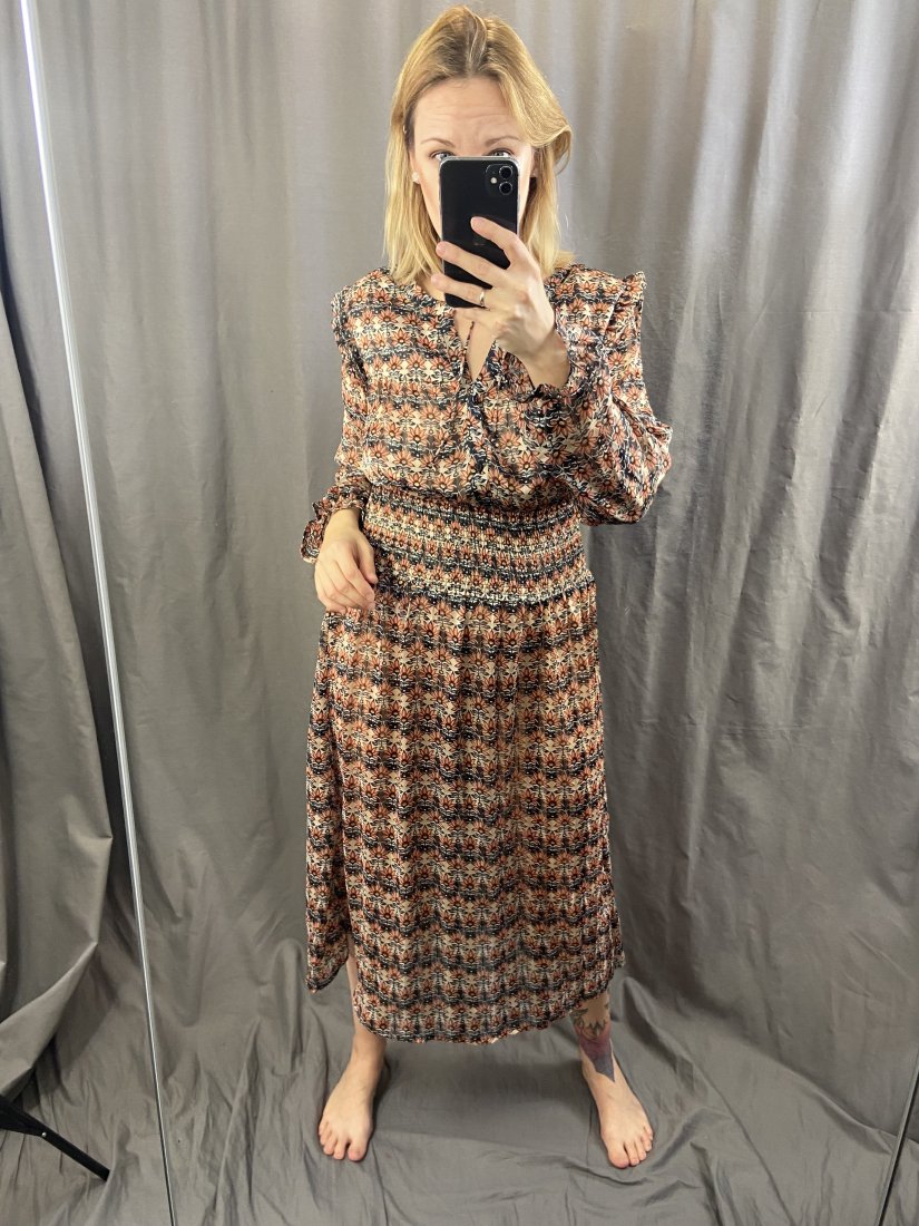Śliczna, delikatnie transparentna sukienka od Continue. Z lekiiego poli. Piękne jesienne kolory.