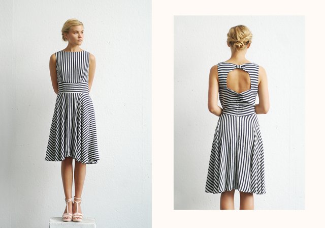 Pełna klasy sukienka vintage, w marynarskim klimacie. Oryginalnie wycięta na plecach.