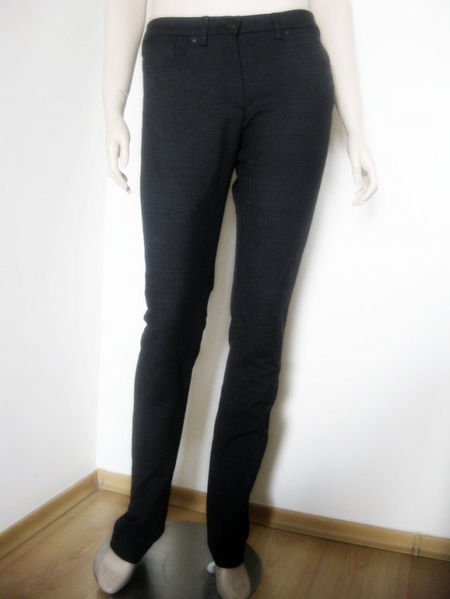 śliczne wąskie spodnie skandynawskiej marki, w popielatym melanżu. Materiał 49% bawełna, 22% wełna,27% poliester, 2% elastan. Stan bardzo dobry. Rozmiar z metki 40. powinny pasować bardziej na 38. Podaję wymiary mierzone na płasko;