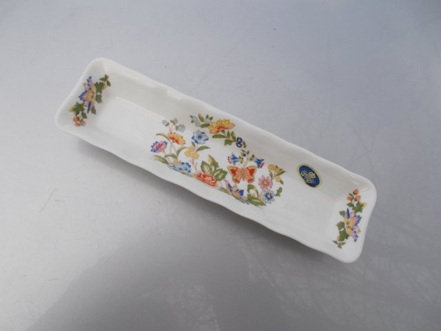 Elegancki Porcelanowy Pojemnik sygnowany jakością AYNSLEY Fine Bone China Made in England z kultowej serii COTTAGE GARDEN. Biała porcelana, charakterystyczny dla tej serii wzór kwiatowy w żywych barwach i motylek. Całość na błyszcząco szkliwiona. Bardzo ciekawy kształt głębokiej rynienki - mieści się swobodnie nożyk, długopis...
