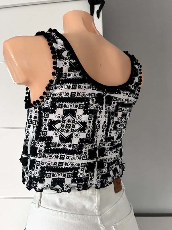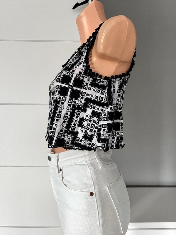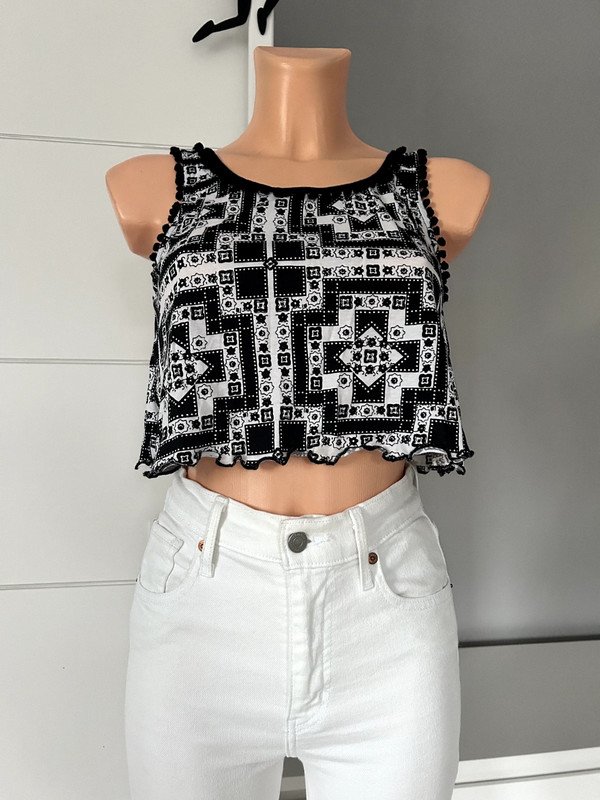 Crop top, bluzka krótka firmy Topshop. Rozmiar XS 34, czarno biała we wzory, 100 % bawełna czyli przewiewna.