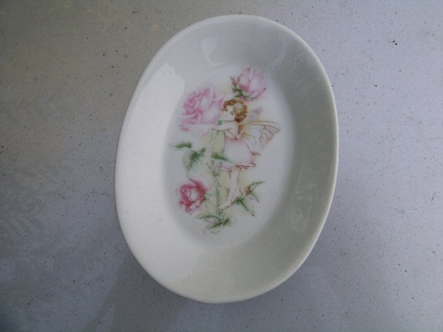 Niewielki Półmiseczek - Paterka bez sygnatury. Z białej mocnej porcelany z delikatnym elfim zdobieniem. Bardzo pięknie subtelna to rzecz. Kolory pastelowe,delikatne. Całość na błyszcząco wykończona, wzór satynowy. Na biżu, na mydło,na drobiazgi inne stołowe...:)
