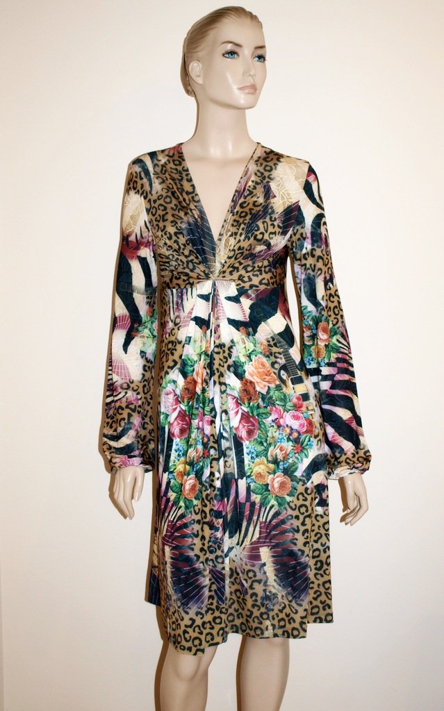 cudowna sukienka ekskluzywne jmarki etoile du monde. Materiał 95% poliester 5% elastan. Piękny lejący materiał i oryginalne cięcia. totalne pomieszanie wzorów, a kwiaty wygladają jak żywe. Rękaw zebrany na dole. stan bardzo dobry. Rozmiar z metki 5, rękaw bardzo długi więc chyba lepsza dla wysokiej osoby. na manekinie o rozmiarze 38. ja polecałabym na 38-40. Podaję wymiary mierzone na płasko;
