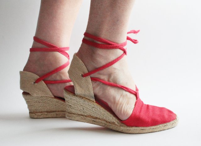 Piękne, czerwone espadryle o ciekawym fasonie. Wiązanie wokół kostki.
