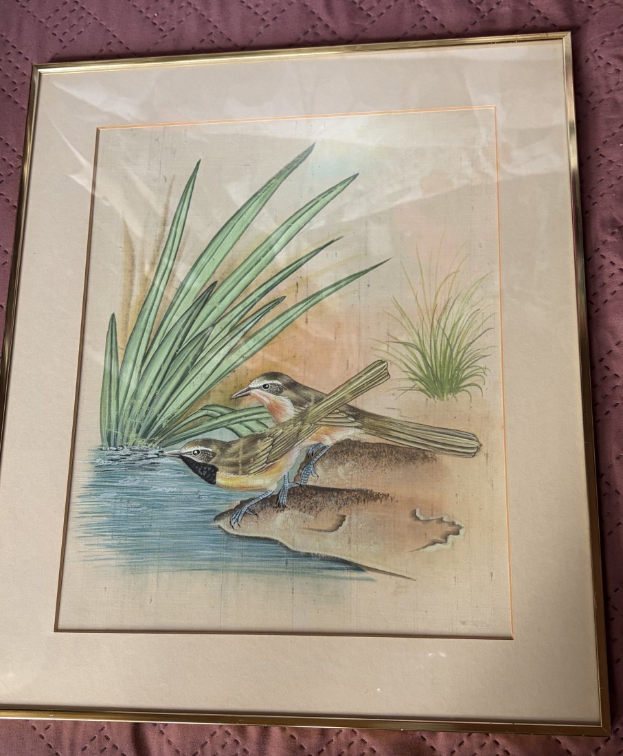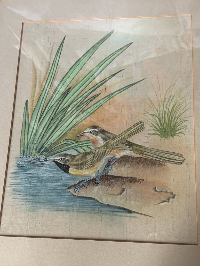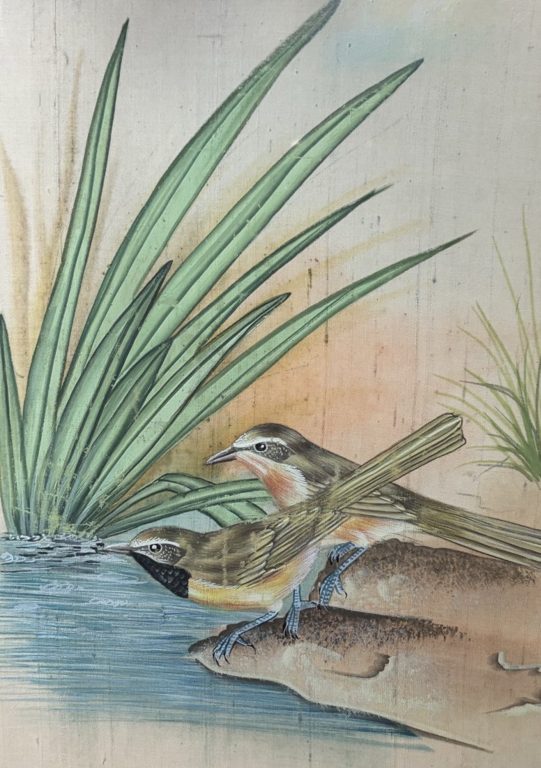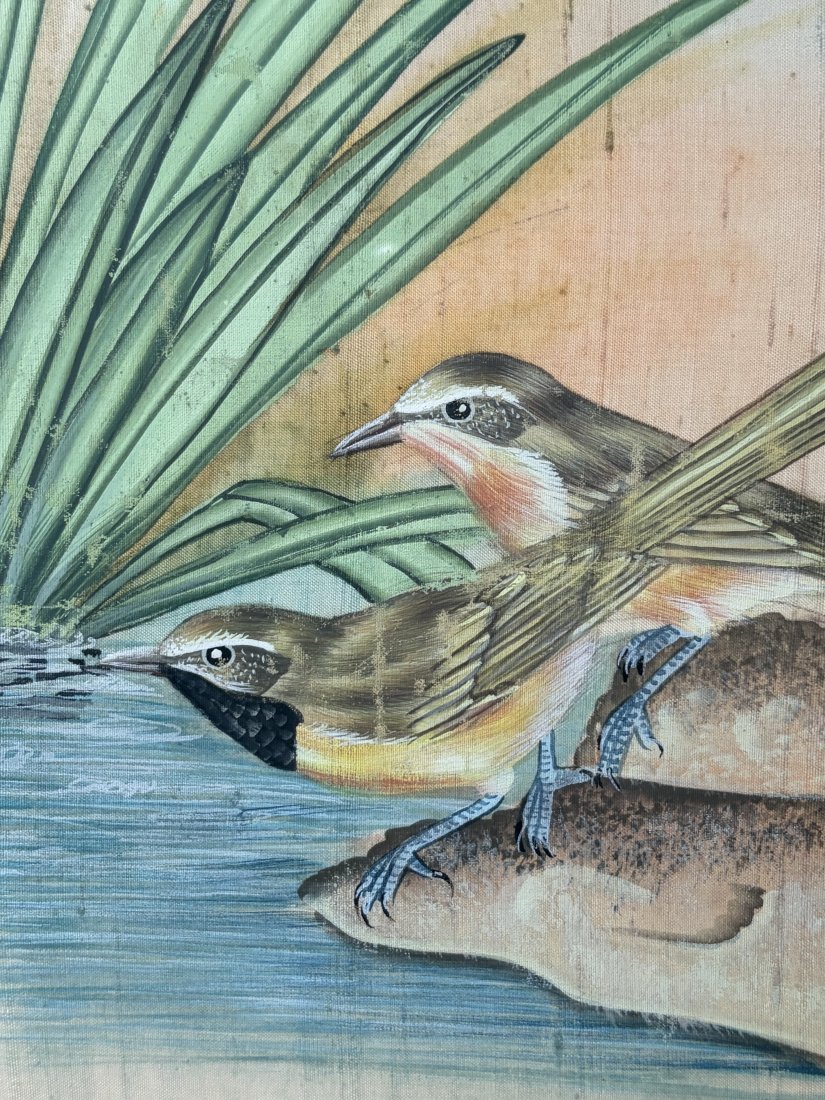#birds hand painted on silk,