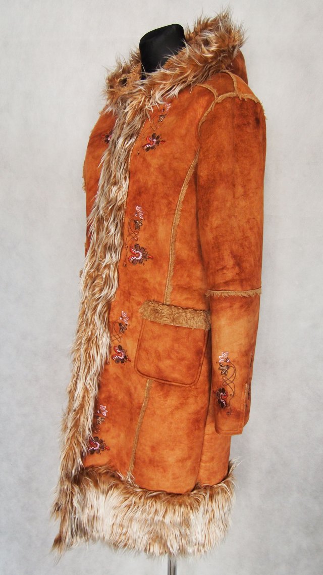 Piękny płaszczyk.sztuczny kożuszek marki Dream Girl. Świetnie skrojony, bardzo ciepły, z dużym kapturem. Wykonany z dbałością o szczegóły, z cudownymi wyszyciami. Zapinany na duże, solidne haftki.