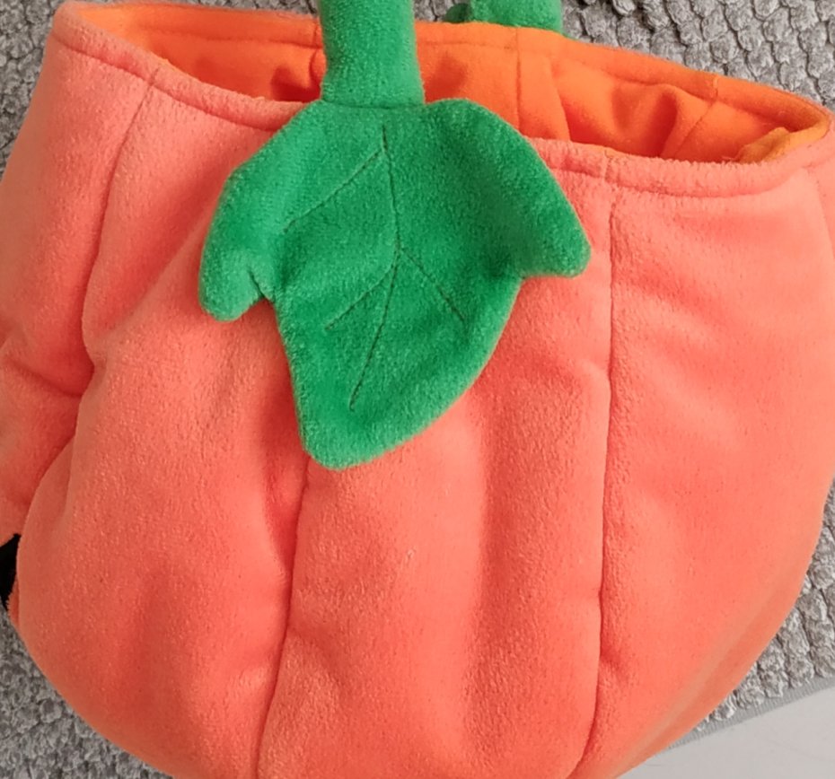 pluszowa torebka w kształcie dyni na halloweenowe słodkie zdobycze.