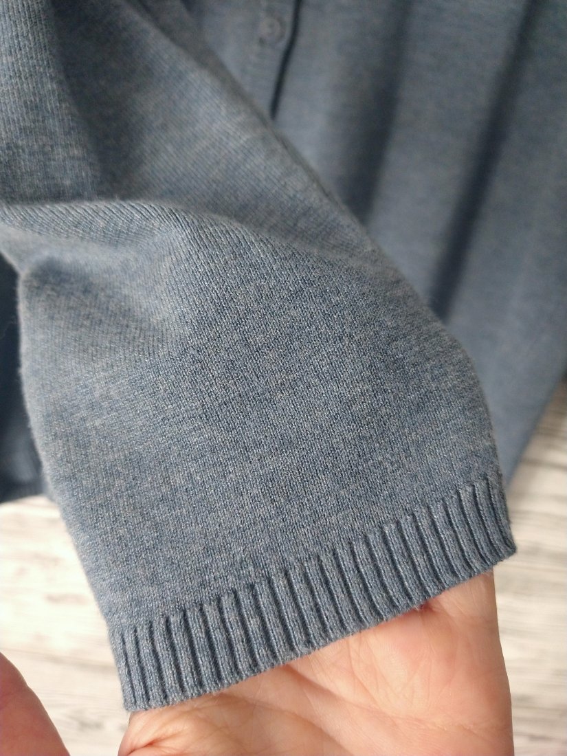 Tagi: #marka premium, #naturalny skład, #niebieski kardigan, #sweter na guziki