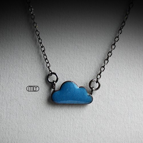 Ceramiczny wisior, ręcznie wykonany z mocno spieczonej gliny kamionkowej, szkliwiony efektowną mieszanką błyszczących błękitnych szkliw z efektem plamek, zawieszony na łańcuszku w kolorze starego srebra. Długość zawieszki ok. 1,7cm, długość łańcuszka 2x20cm. Polecam .