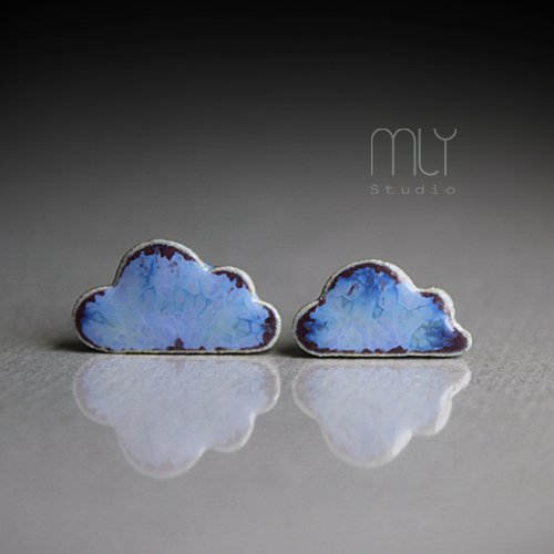 Oryginalne ceramiczne kolczyki w formie sztyftów, ręcznie wykonane z gliny kamionkowej, jednostronnie szkliwione mieszanką fioletowych i błękitnych szkliw z efektem drobnych plamek, na antyalergicznych sztyftach w kolorze srebrnym. Długość ok 17 i 15mm. Polecam