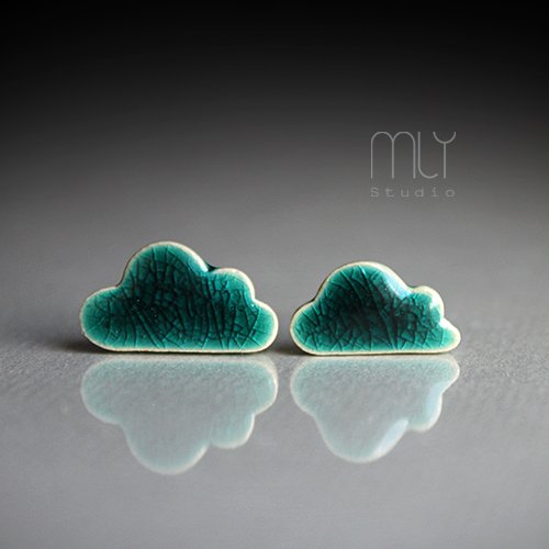 Oryginalne ceramiczne kolczyki w formie sztyftów, ręcznie wykonane z delikatnej kamionki, jednostronnie szkliwione zielonym szkliwem z efektem drobnych plamek i spękań, na antyalergicznych sztyftach w kolorze srebrnym. Długość ok 17 i 15mm. Polecam