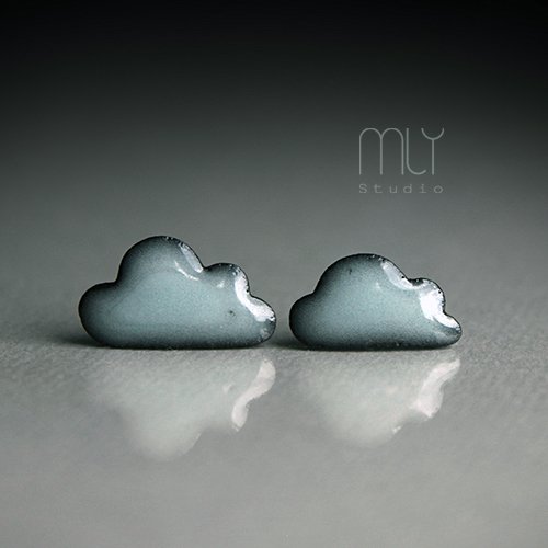 Oryginalne ceramiczne kolczyki w formie sztyftów, ręcznie wykonane z delikatnej czarnej porcelany, jednostronnie szkliwione blado zielonym seladonowym szkliwem z efektem drobnych plamek, na antyalergicznych sztyftach w kolorze srebrnym. Długość ok 17 i 15mm. Polecam