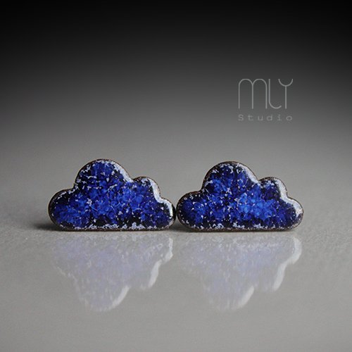 Oryginalne ceramiczne kolczyki w formie sztyftów, ręcznie wykonane z delikatnej kamionki, jednostronnie szkliwione błękitnym szkliwem z efektem drobnych plamek, na antyalergicznych sztyftach w kolorze srebrnym. Długość ok 17mm. Polecam