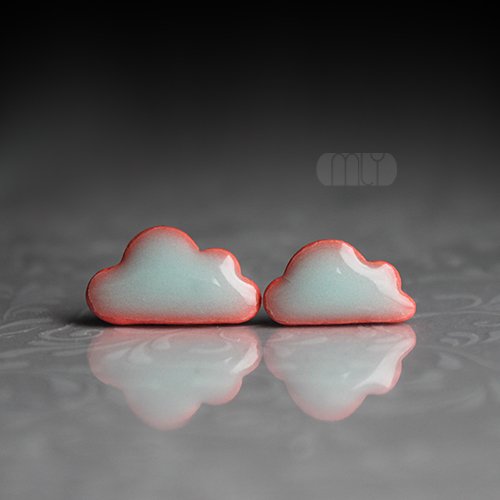 Oryginalne ceramiczne kolczyki w formie sztyftów, ręcznie wykonane z delikatnej różowej porcelany, jednostronnie szkliwione blado zielonym seladonowym szkliwem z efektem drobnych plamek, na antyalergicznych sztyftach w kolorze srebrnym. Długość ok 17 i 15mm. Polecam