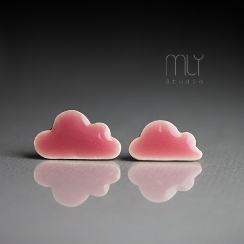 Oryginalne ceramiczne kolczyki w formie sztyftów, ręcznie wykonane z gliny kamionkowej, jednostronnie szkliwione mieszanką różowych szkliw z efektem drobnych plamek, na antyalergicznych sztyftach w kolorze srebrnym. Długość ok 17 i 15mm. Polecam