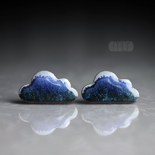 Oryginalne ceramiczne kolczyki w formie sztyftów, ręcznie wykonane z delikatnej kamionki, jednostronnie szkliwione błękitnym szkliwem z efektem drobnych plamek, na antyalergicznych sztyftach w kolorze srebrnym. Długość ok 17mm. Polecam