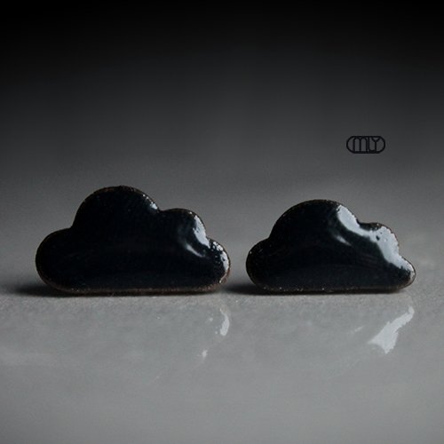 Oryginalne ceramiczne kolczyki w formie sztyftów, ręcznie wykonane z delikatnej kamionki, jednostronnie szkliwione czarnogranatowym szkliwem z efektem drobnych plamek, na antyalergicznych sztyftach w kolorze srebrnym. Długość ok 17mm i 15mm. Polecam