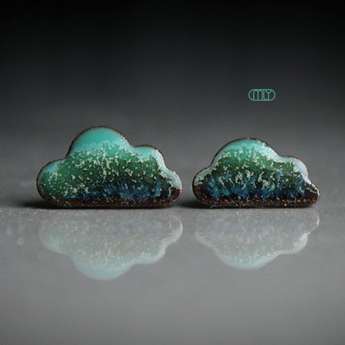 Oryginalne ceramiczne kolczyki w formie sztyftów, ręcznie wykonane z gliny kamionkowej, jednostronnie szkliwione mieszanką zielonych szkliw z efektem drobnych plamek, na antyalergicznych sztyftach w kolorze srebrnym. Długość ok 17 i 15mm. Polecam