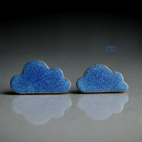 Oryginalne ceramiczne kolczyki w formie sztyftów, ręcznie wykonane z delikatnej kamionki, jednostronnie szkliwione błękitnym szkliwem z efektem drobnych plamek, na antyalergicznych sztyftach w kolorze srebrnym. Długość ok 17mm i 15mm. Polecam