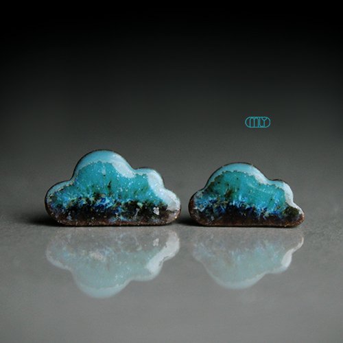 Oryginalne ceramiczne kolczyki w formie sztyftów, ręcznie wykonane z delikatnej kamionki, jednostronnie szkliwione zielono błękitnym szkliwem z efektem drobnych plamek, na antyalergicznych sztyftach w kolorze srebrnym. Długość ok 17mm i 15mm. Polecam