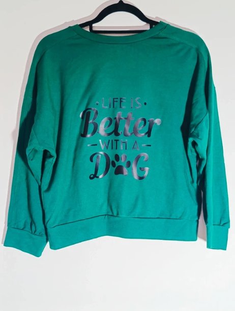 Bluza jest z drugiej ręki i dostała dodatkowy nadruk co sprawia, że jest niepowtarzalna.