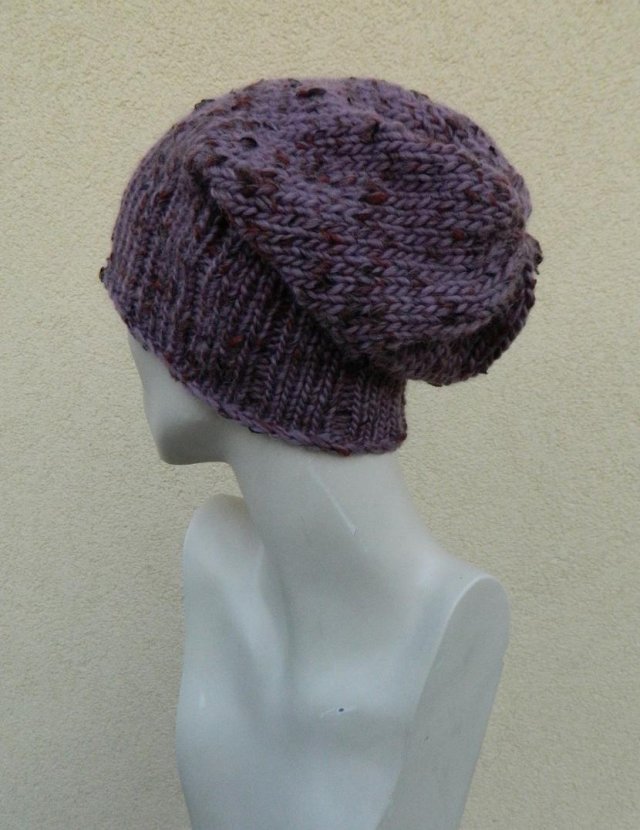 Gruba wełniana czapa w pięknym kolorze - poszarzałym odcieniu wrzosu nakrapianym rudością i czernią. Wydziergałam ją z fantastycznej gatunkowo 100% angielskiej wełny. Jest bardzo ciepła, mięsista i jak na wełnę setkę miła w dotyku. Krasnalowy fason daje dużą swobodę formowania na kilka sposobów, wg upodobania. Najlepiej będzie pasowała na głowę o obwodzie ok 56-58cm, głębokość 30cm.