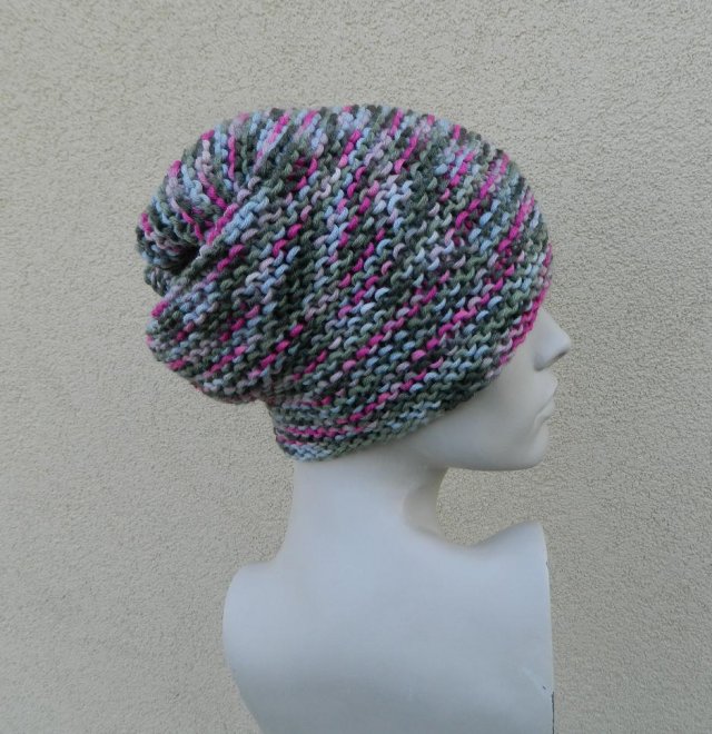 Szaro-różowa wełniana czapa średniej grubości. Wydziergałam ją z fantastycznej gatunkowo włóczki w odbiorze przypominającej bawełnę a składowo to 50% wełny i 50% polyacrylu. Jest sprężysta, ciepła, bardzo miła dla skóry. Krasnalowy fason daje dużą swobodę formowania na kilka sposobów, wg upodobania. Najlepiej będzie pasowała na głowę o obwodzie ok 56-58cm, głębokość 29cm.