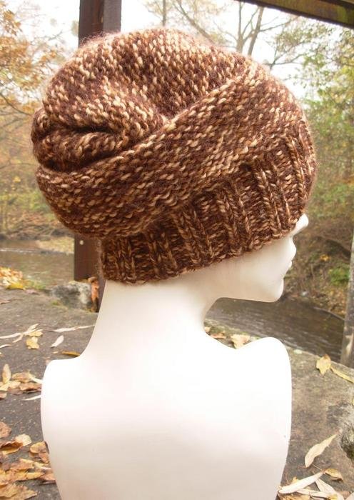 Czapa o wydłużonym krasnalowym fasonie, melanż beżu z brązem (w realu kolor zimniejszy, mniej kasztanowy). Dobra gatunkowo włóczka,w składzie 80% wełny i 20% mohairu. Jest średniej grubości (bardziej gruba niż cienka), ciepła i mięsista. Rozmiarowo najlepiej na głowę o obwodzie ok 56-58cm, długość 31cm.