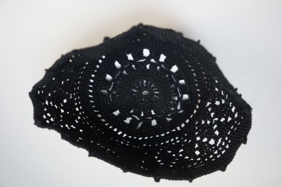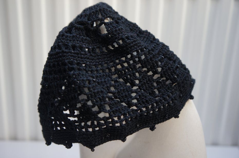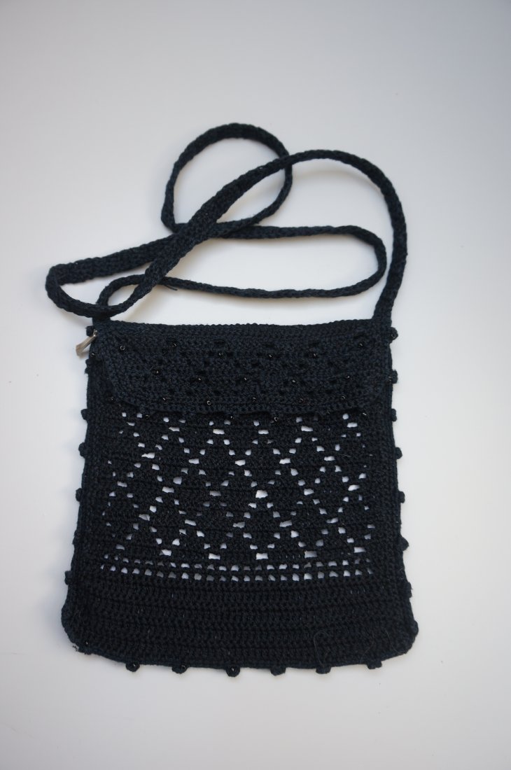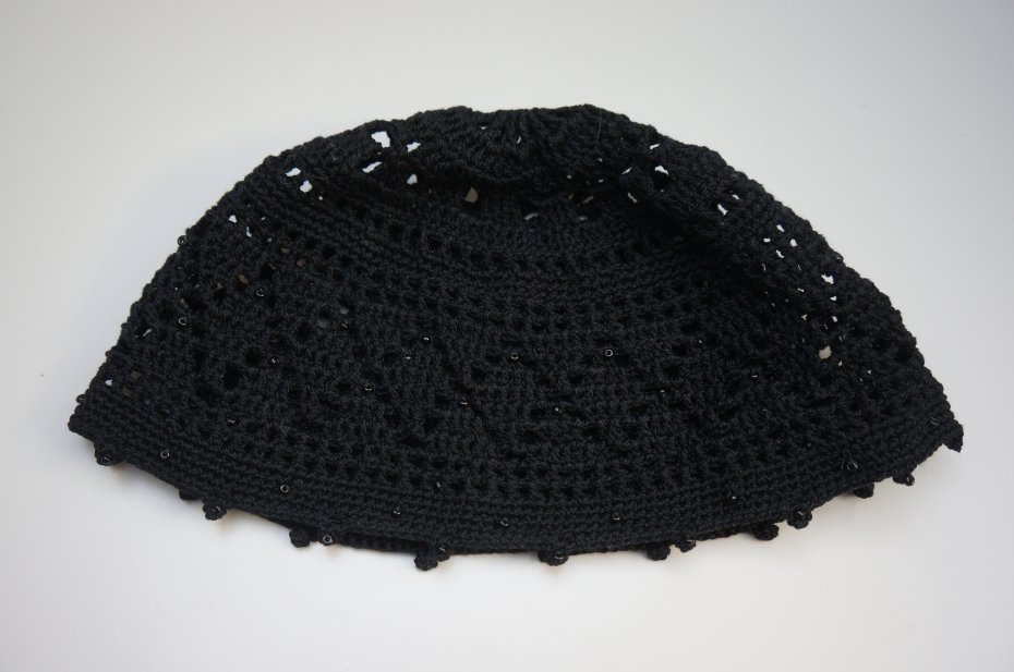 Czapeczka i torebka dla dziewczynki. Wykonane na szydełku z bawełnianej włóczki. Ozdobiona czarnymi koralikami. Torebka cała na podszewce. Zapinana na zamek.