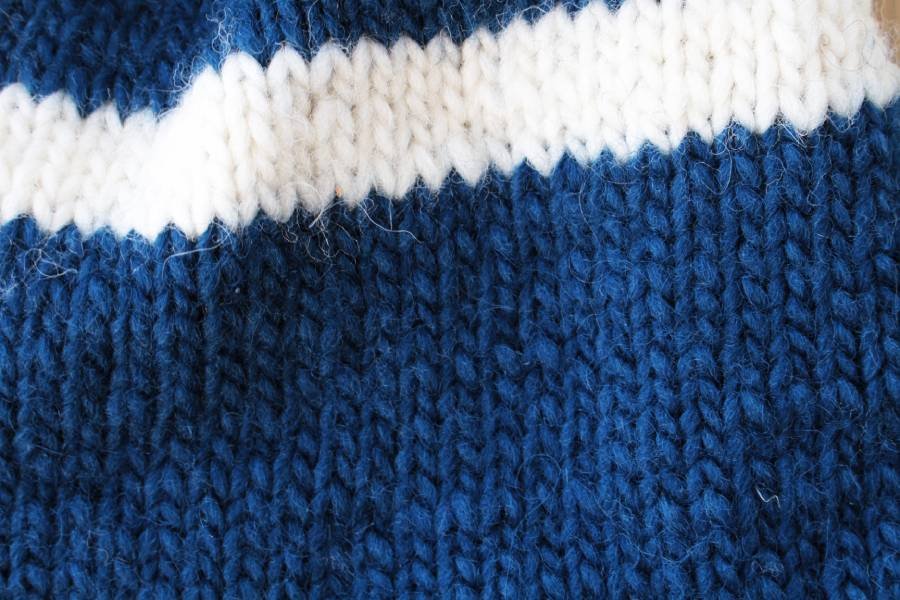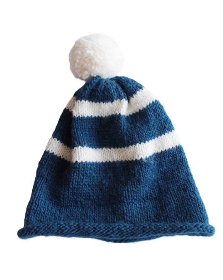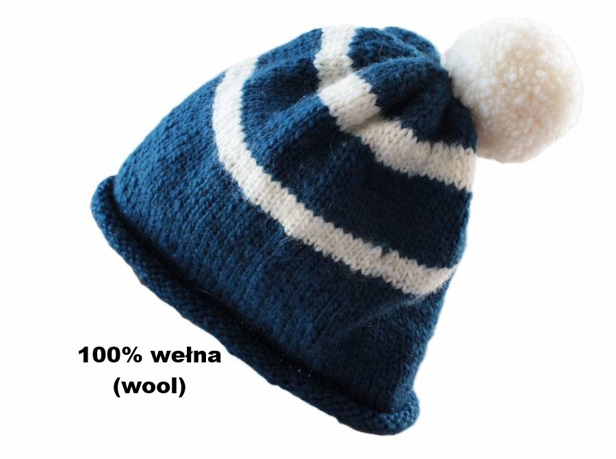 Przedstawiam Państwu ciepłą czapkę w 100% z wełny z pomponem. Kolor granatowy.