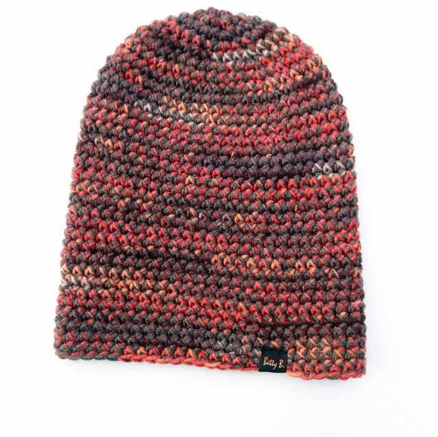 Czapka w ciepłych odcieniach brązu.